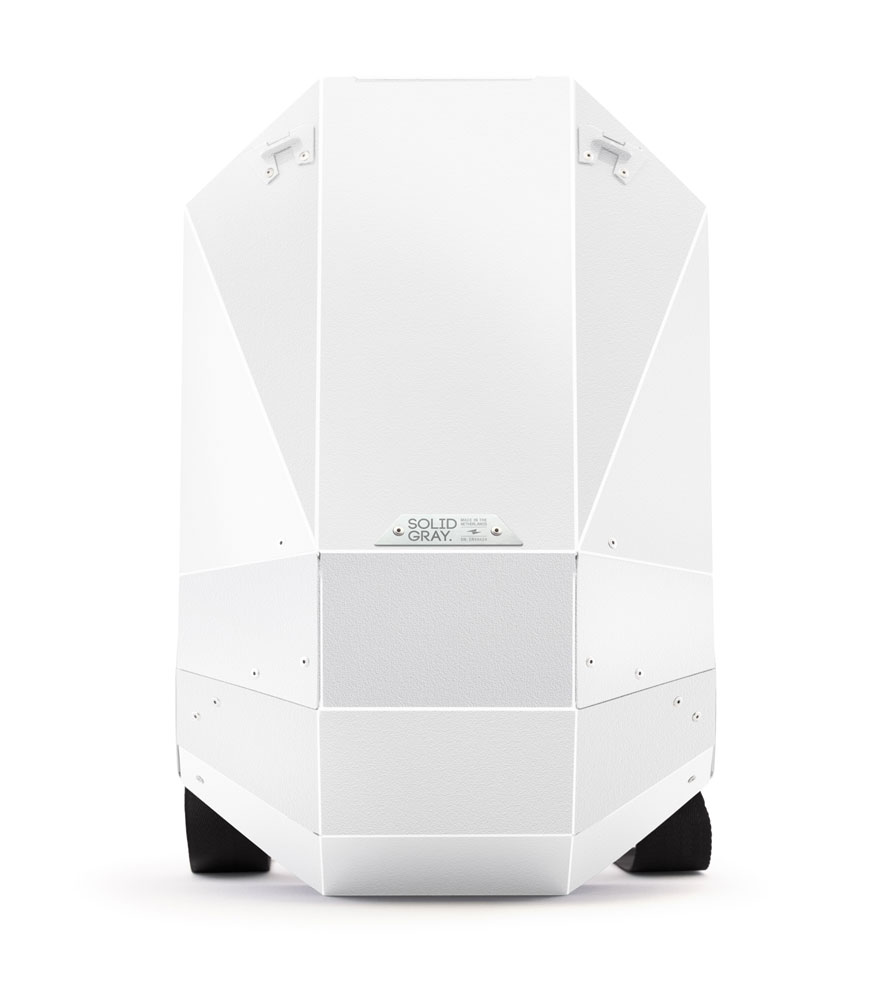 A comfortable and convenient top handle is hidden in plain sight; there when you need it and automatically retracts itself when not in use.